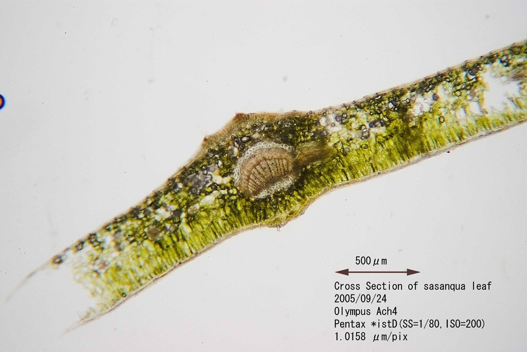 ここでは、サザンカの葉の横断面のプレパラートの作り方を例にミクロトームを使ったプレパラートの作成方法をご紹介します。