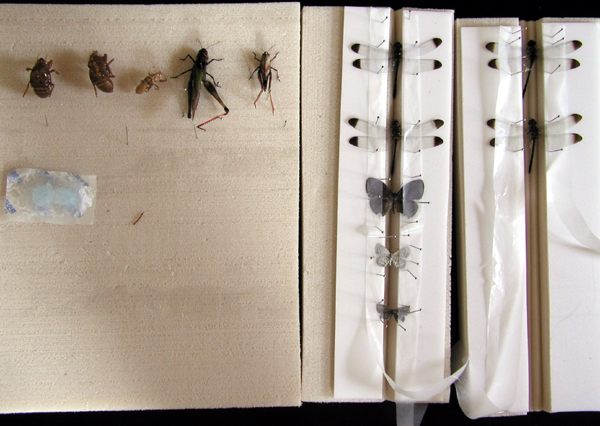 当時小学5年生の長男が標本を 作成する際の展翅板と展足板の様子です。展翅板と展足板の使い方の参考にしてください。